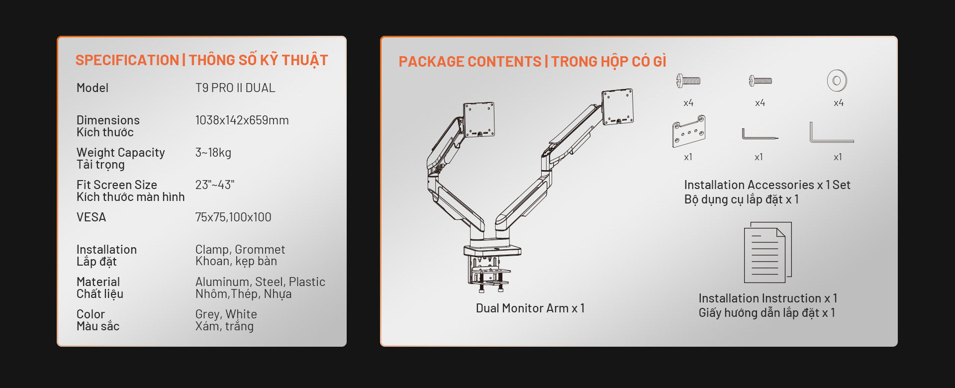 Giá đỡ màn hình Human Motion T9 Pro II Dual